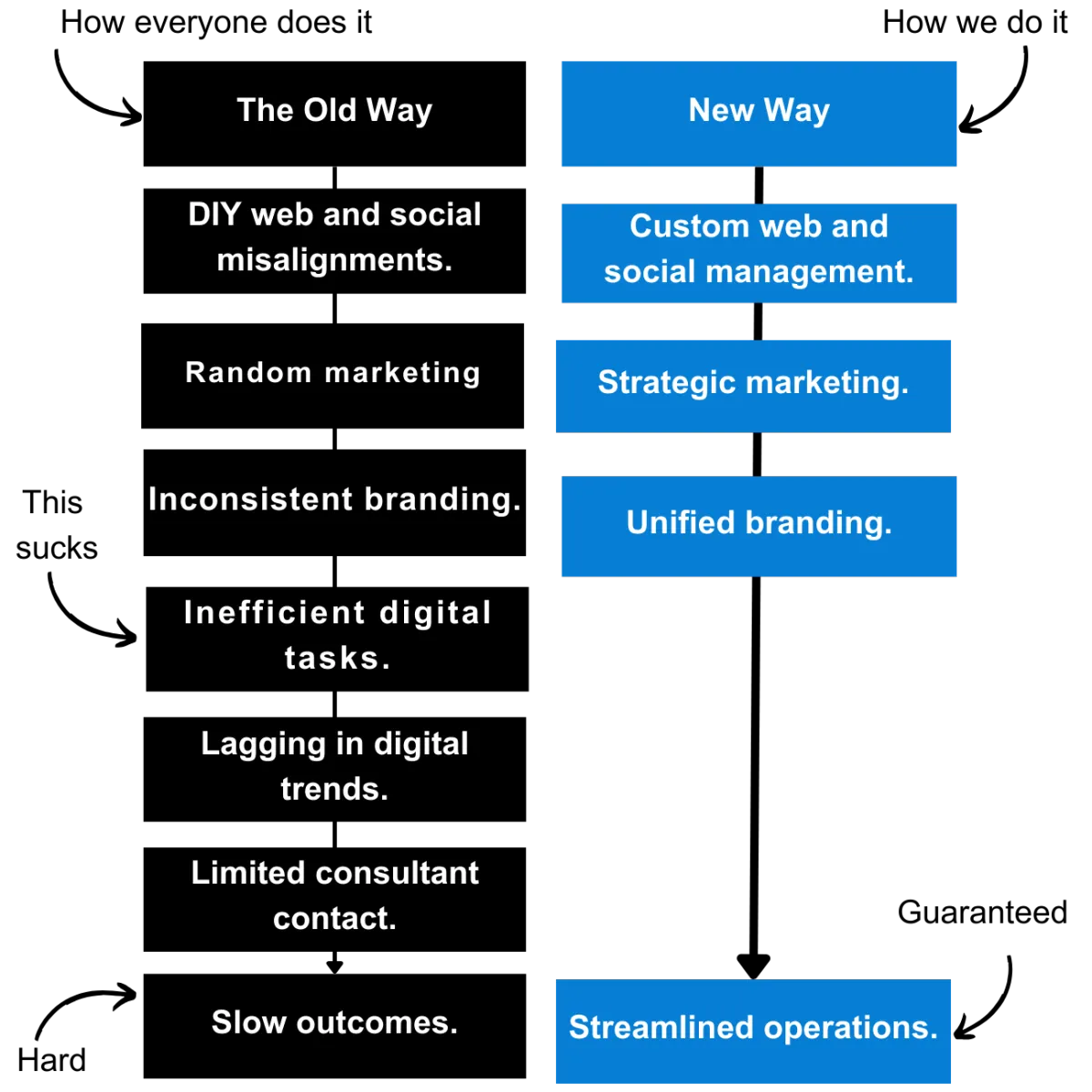 Let’s compare the old way VS our new, streamlined approach!
